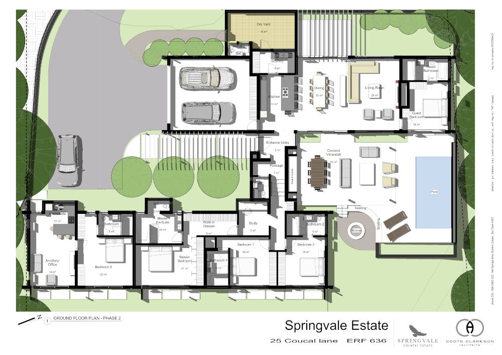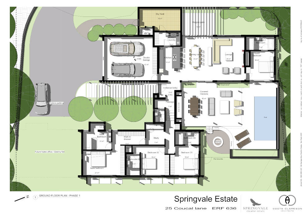 The second phase of the home design can accommodate an ancillary unit (granny flat) or a home office conveniently located off the driveway arrival point.